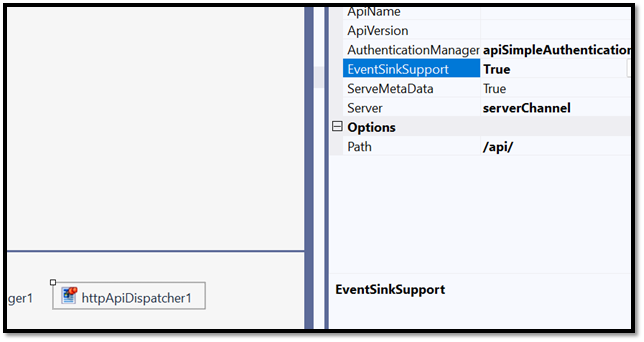 Then select httpApiDispatcher1 and set the following values in the Properties window: